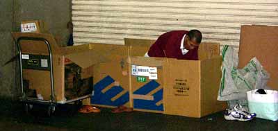 ホームレスの人達は、新宿の、とある大きいデパートが閉店時間になるやいなや、彼らの仮住まいを組み立て始めた。