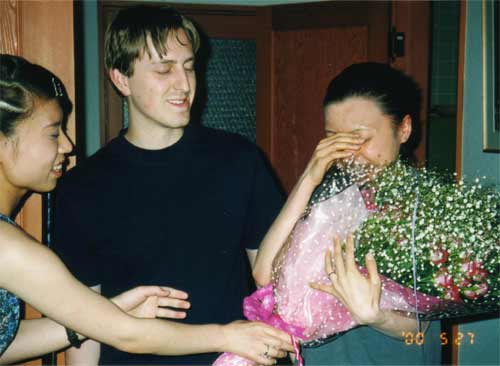 彼女は花束を手渡され、みんなはウェディングマーチを口ずさんだ。みんなは、亜希子ができなくて残念に思っていたアメリカンスタイルの結婚式を作ろうと飛び切りの努力をしてくれたんだ。